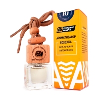 Фирменный ароматизатор Родные масла в удобном стеклянном подвесном флаконе с деревянной крышкой.
